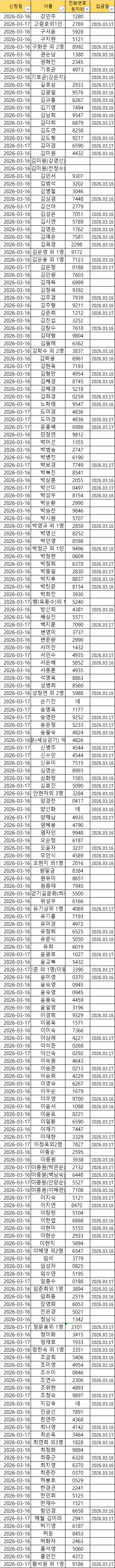 026.03.20 15:00기준 참가신청 및 입금내역 확인 안내입니다