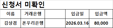 신청서 미확인 명단에 있는 분들은 신청서를 작성해주세요.